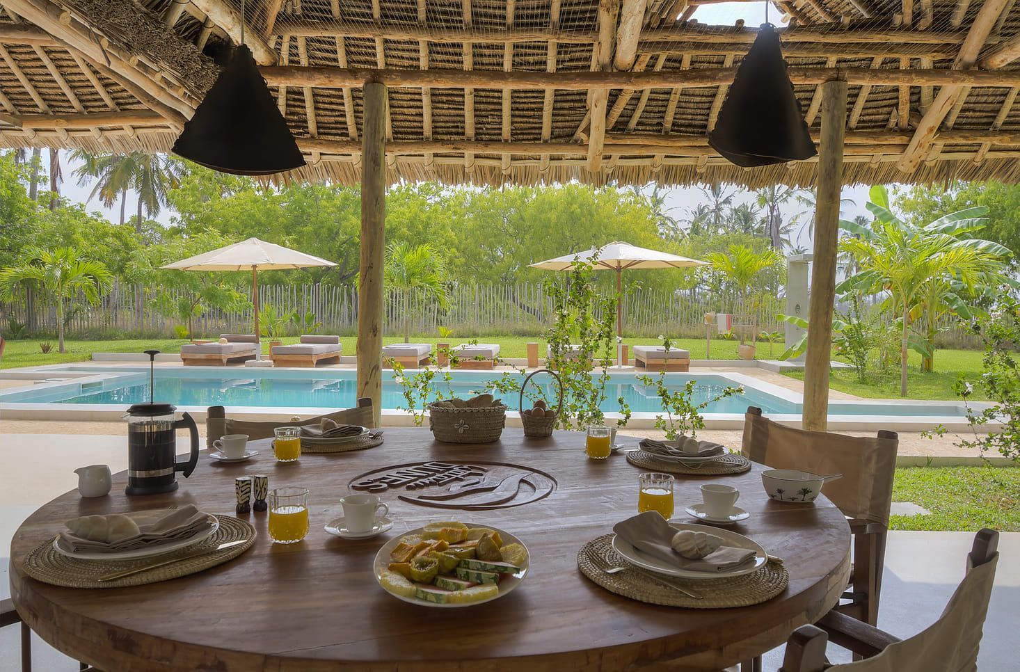The outdoor area with its pool, sun-beds, outdoor shower, dining and bar evoke the best kind of chill area for a well deserved holiday.