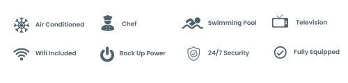 4 bedrooms and 4 en-suite bathrooms (all fans and air conditioning), towels, bed linen, panic button per room, living room with chill area and dining table.