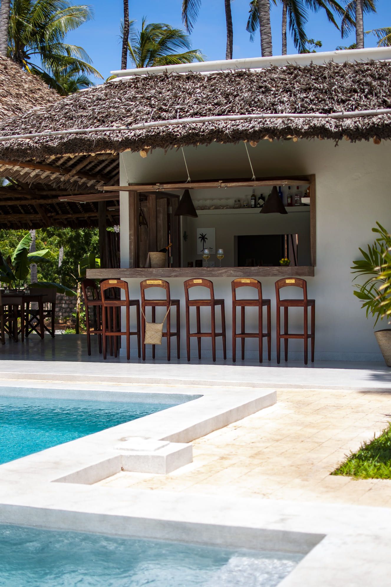 The outdoor area with its pool, sun-beds, outdoor shower, dining and bar evoke the best kind of chill area for a well deserved holiday.