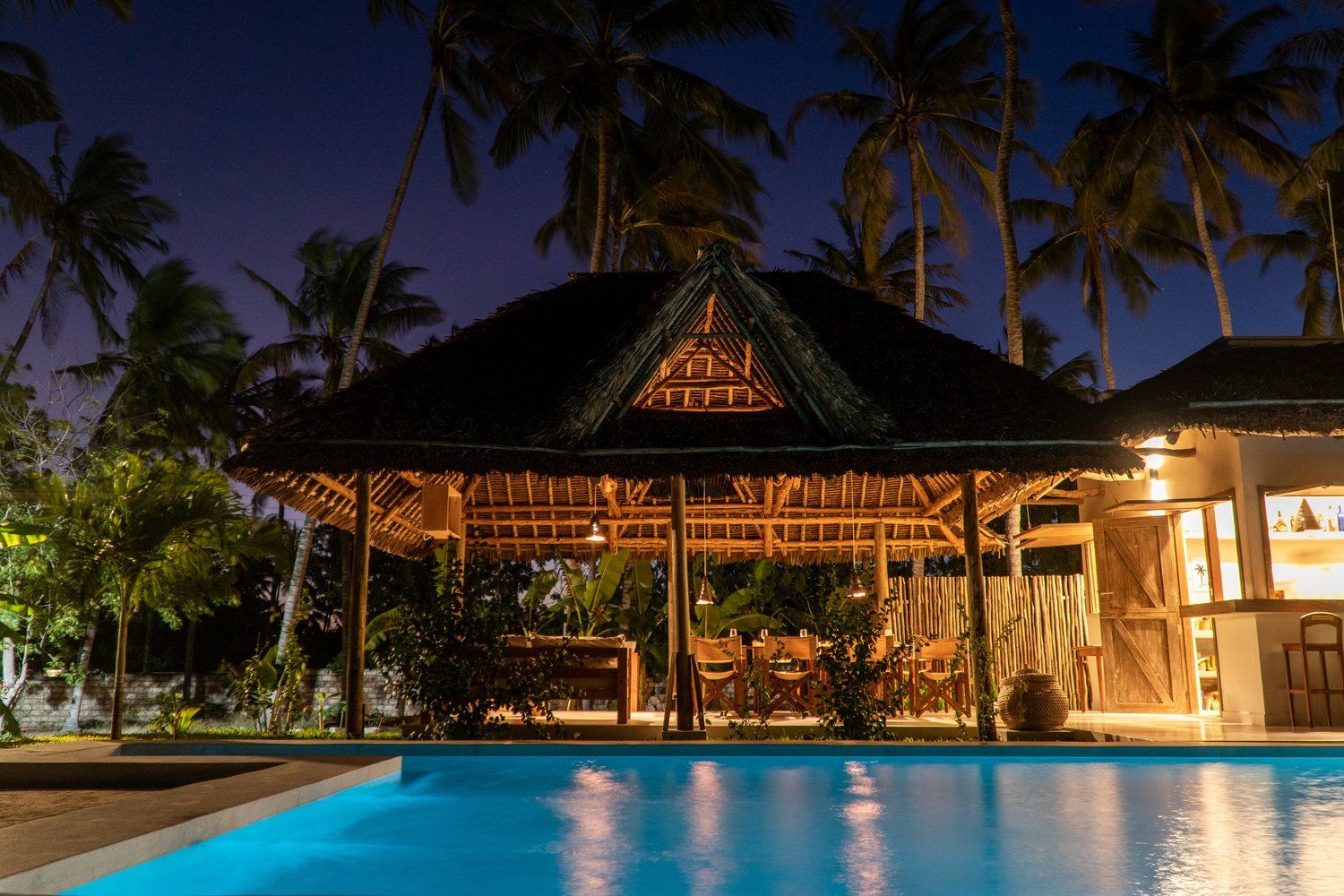 Our exclusive Villa in Watamu, surrounded by palm trees, has two welcoming residences with one house of 4 spacious characterful en suite double rooms.